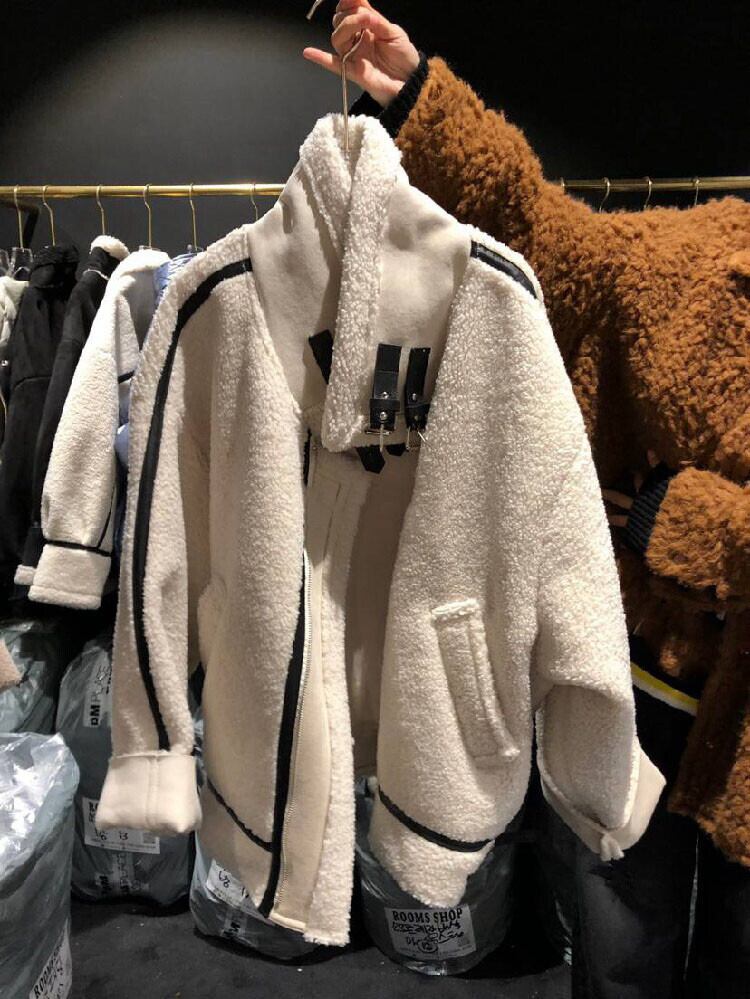 減齢 ゆったりする スリム 暖かい ラムウール ジッパー コートトレンド