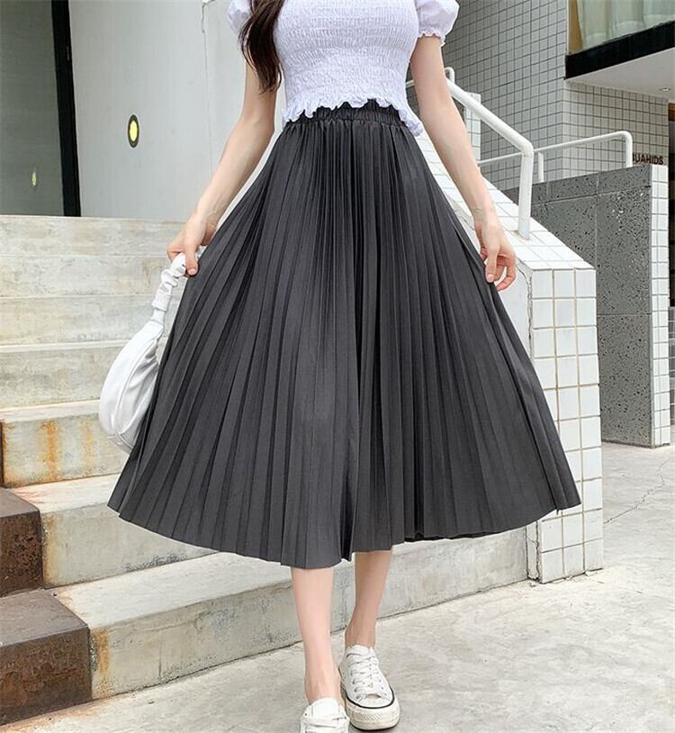 トレンド感たっぷり! ハイウエスト スリム ラージサイズ 中・長セクション プリーツスカート
