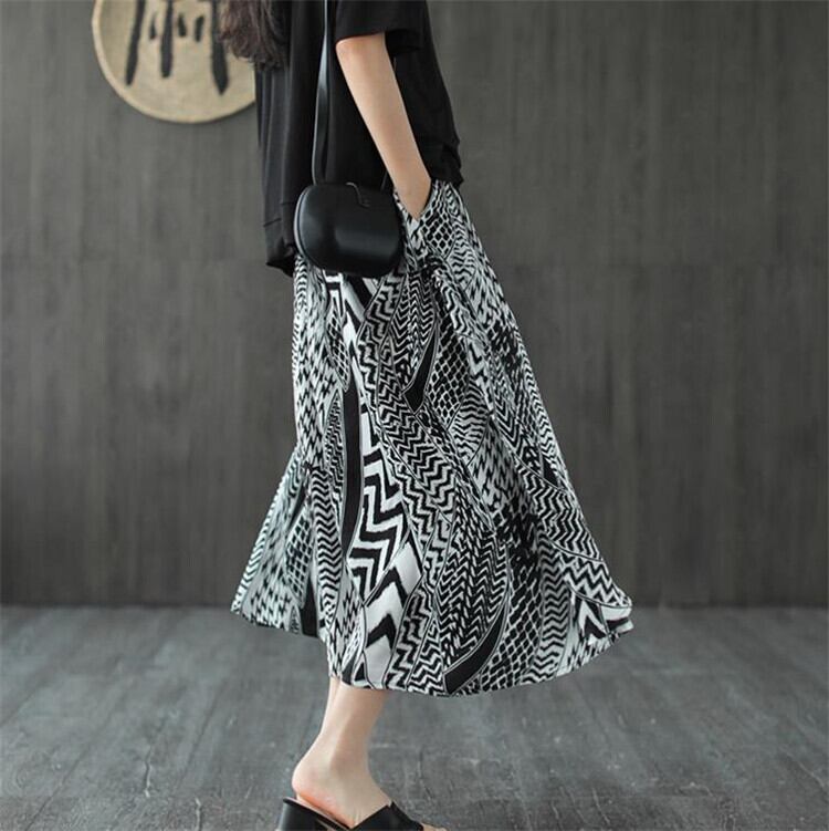 外出活動もおしゃれに 韓国ファッション デジタル プリント スカート アーティスティック