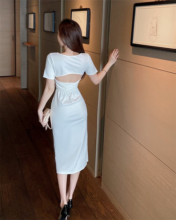 セクシー 透かし彫り 背透けて バンディング 蝶結び 中・長セクション スリム ワンピース
