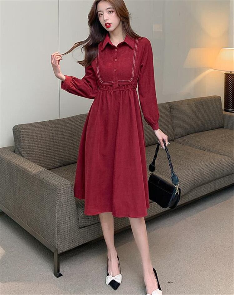 クーポン適用OK 早い者勝ち ロングスカート 長袖 コーデュロイ ワンピース 大きい裾 快適である