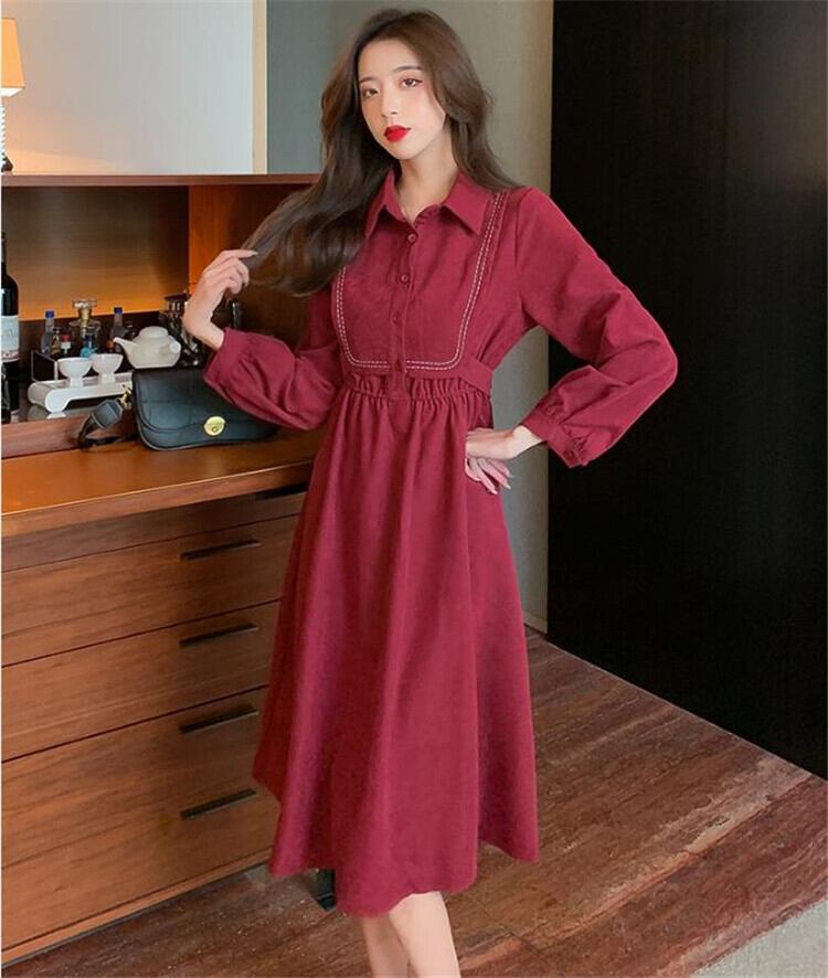 気質の女神は本当に綺麗です コーデュロイ ワンピース 大きい裾 ギャザリング ハイウエスト