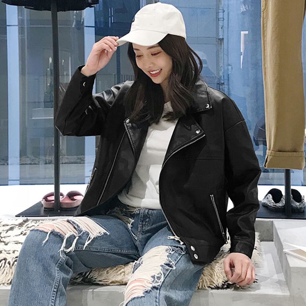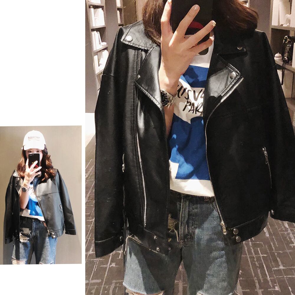 カッコいいブルゾン フェイクレザージャケット 秋冬アウター ゆったり革ジャン 韓国 おしゃれ PUコード 着やせ レトロ